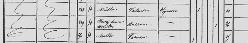 Déjà l'hiver passé, Valentin avait donné à son frère Balthazar, 8 ans, trois morceaux de pain imbibés d'une étrange substance bleuâtre. Il lui indiqua, avec insistance, qu'un morceau était pour lui et qu'il devait distribuer les autres pains, l'un à son frère et l'autre à sa sœur. Quelle bienveillance ! L'aspect douteux et ragoutant découragea les enfants et ils décidèrent de les remettre à leur tante par alliance, la nouvelle femme de leur beau-père, Hélène Sommer, qui vivait dans leur maison avec le beau-père, le vigneron Muller Valentin et son fils, Jean, le demi-frère HELLER de Julienne WANTZ et MULLER. Ce dernier décèdera à l'âge d'un an en mars 1837. Une belle famille recomposée et tourmentée !