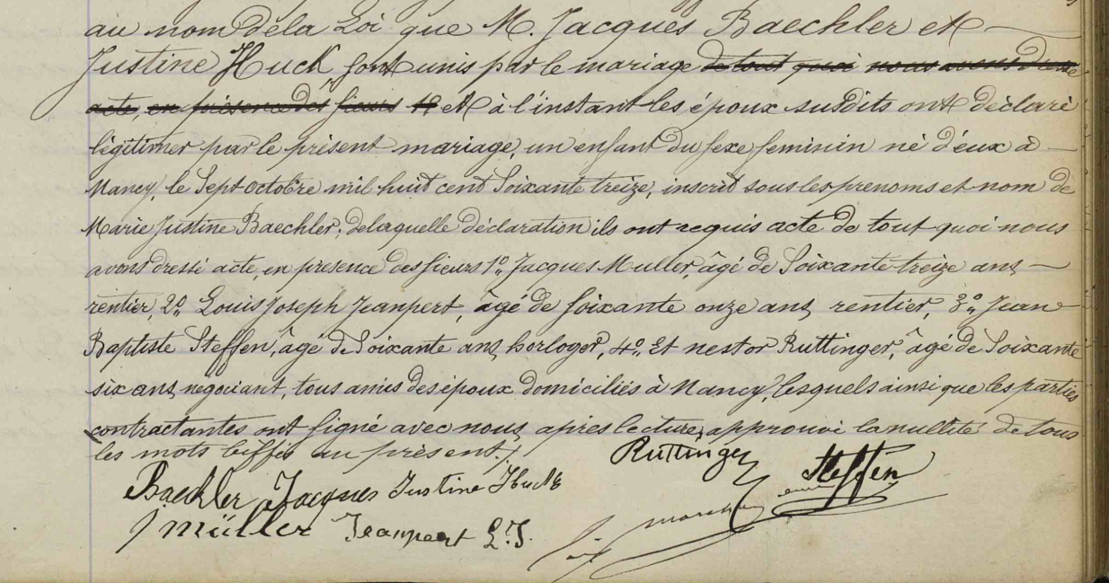 - Sa femme s'appelle Justine HUCK, 25 ans, née à Bischoffsheim