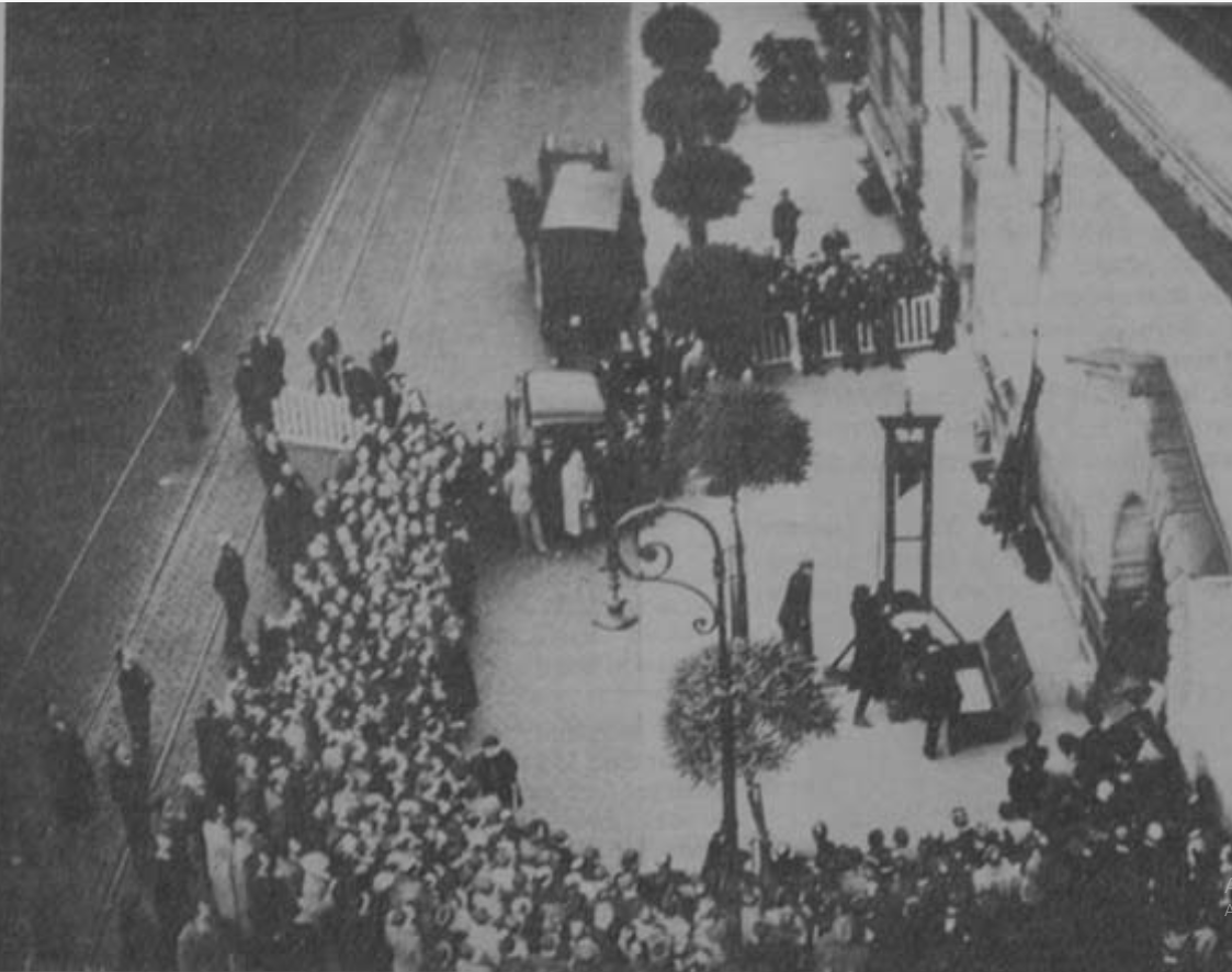 La guillotine est remise en état. Dix minutes plus tard, Joseph WIRTH est amené à son tour. Il prie, embrasse le crucifix, et laisse échapper un dernier soupir avant que justice ne s’abatte sur lui. Un quart d’heure plus tard, la cloche des pauvres pécheurs (Armesünderglocke) cesse de sonner. Tout est terminé. Les deux corps, brièvement examinés à des fins médico-légales, sont confiés à l’anatomie. Devant la prison, une poignée de curieux discute à voix basse, le visage grave. Derrière les murs, s’est clos une histoire d’amour, de trahison et de mort.