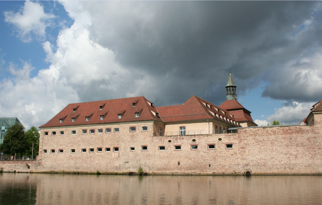 A droite, ancienne prison centrale de Strasbourg, au fond, ponts couverts et le quartier de la Petite France