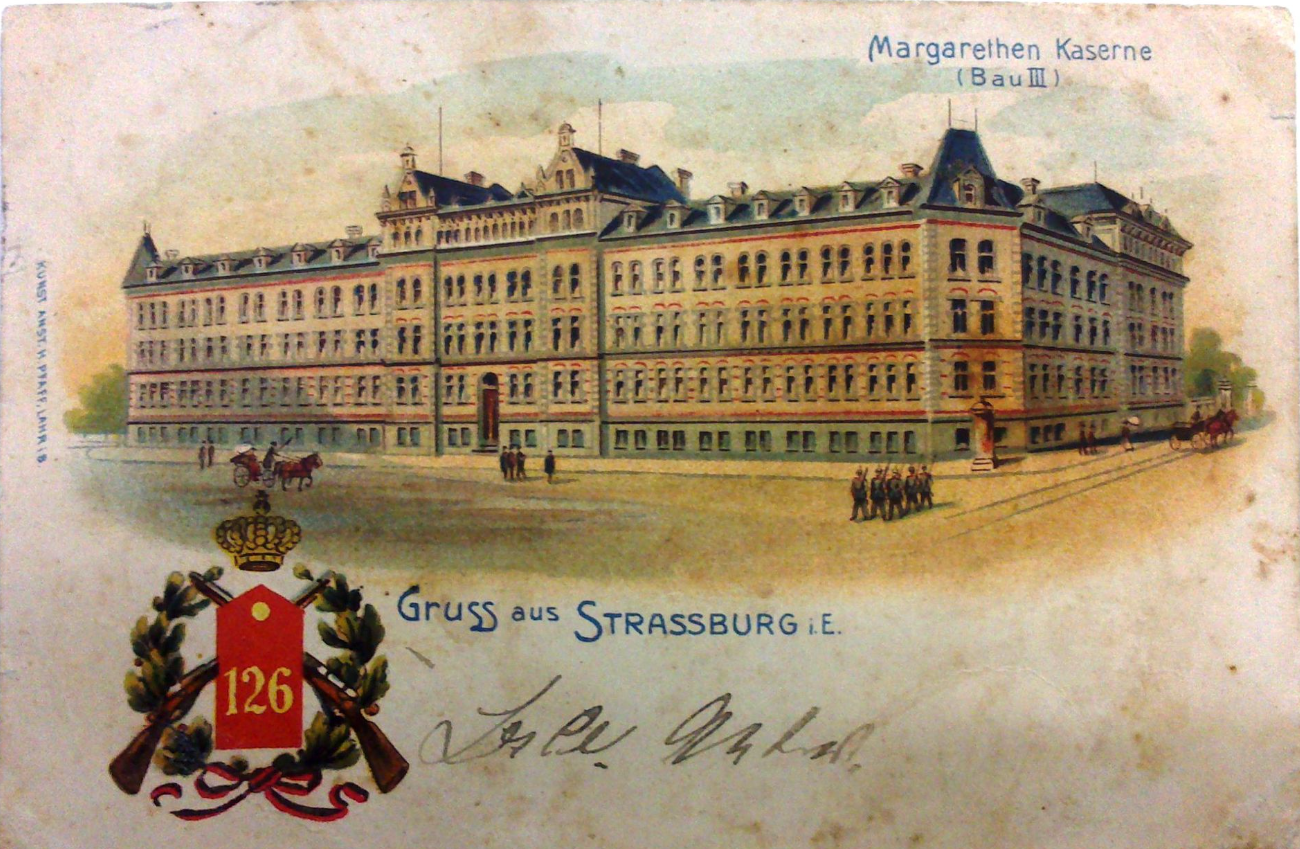 - Logement : Les soldats étaient souvent logés dans des casernes comme la Steinkaserne (Caserne Faubourg de Pierre) ou à proximité du quartier du Polygone pour les exercices.