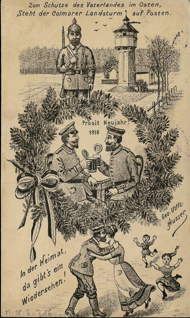 Carte du 8 janvier 1914 à sa fiancée : « Mais ça ira bientôt mieux, alors ne t'inquiète pas. Je devais aller à l'infirmerie (Lazarett), mais elle est trop bondée, c'est pourquoi je suis encore ici ».