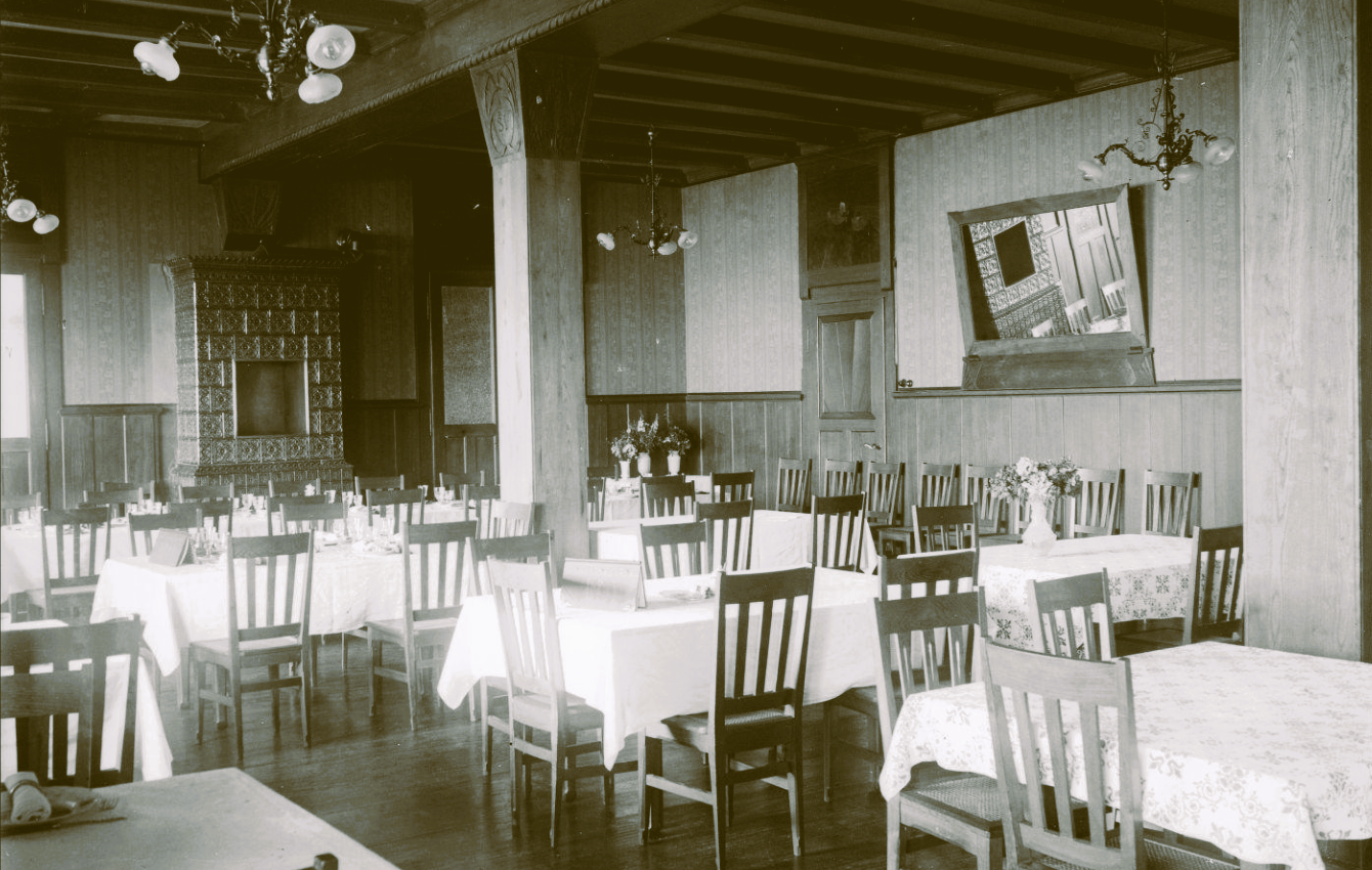 Intérieur de l'hôtel St Jacques, salle à manger 1909 (fond Blumer, archives de Strasbourg)