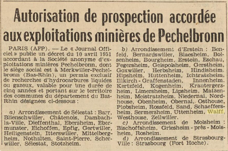 Déjà en 1951, on soupçonnait du pétrole à Valff comme à Pechelbronn !