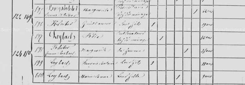 Dans le dénombrement de la population de 1846, la famille des parents KLEIBER est recensée au nᵒ 61 de la rue Thomas. La grand-mère, Anne-Marie KLIPFEL est veuve. Grand-père Antoine est mort à 56 ans.