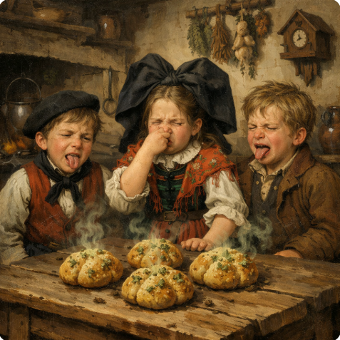 Mais revenons à nos petits pains de Valentin. La tante se méfia de la substance douteuse des petits pains et s'en débarrassa.