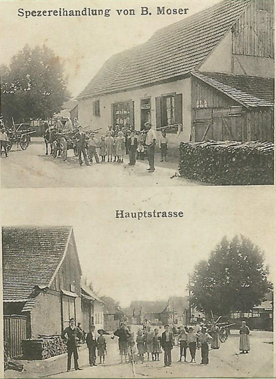 Photo de 1908. Maisons n°45 et 48. Photo du haut et du bas n°50 au fond à droite à l'angle de la rue Haute.