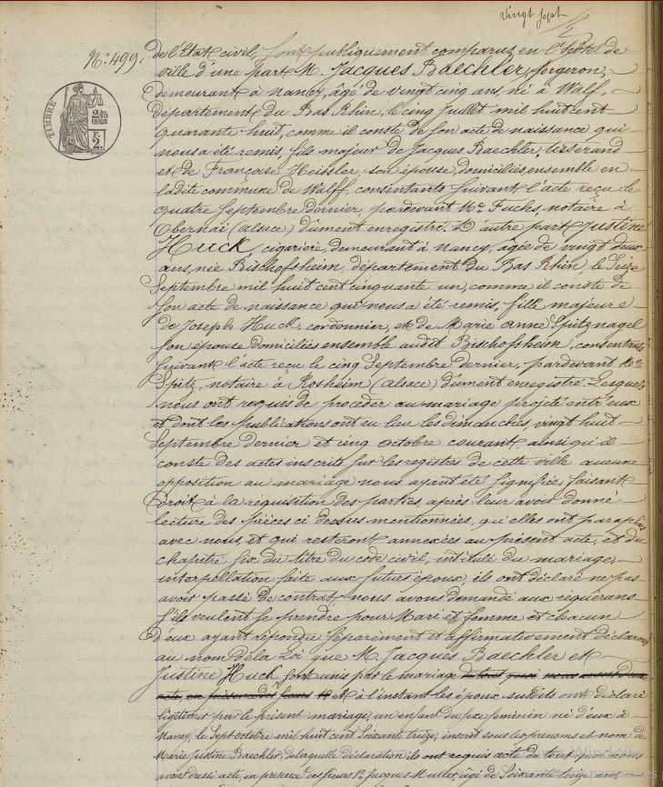- Sa femme s'appelle Justine HUCK, 25 ans, née à Bischoffsheim