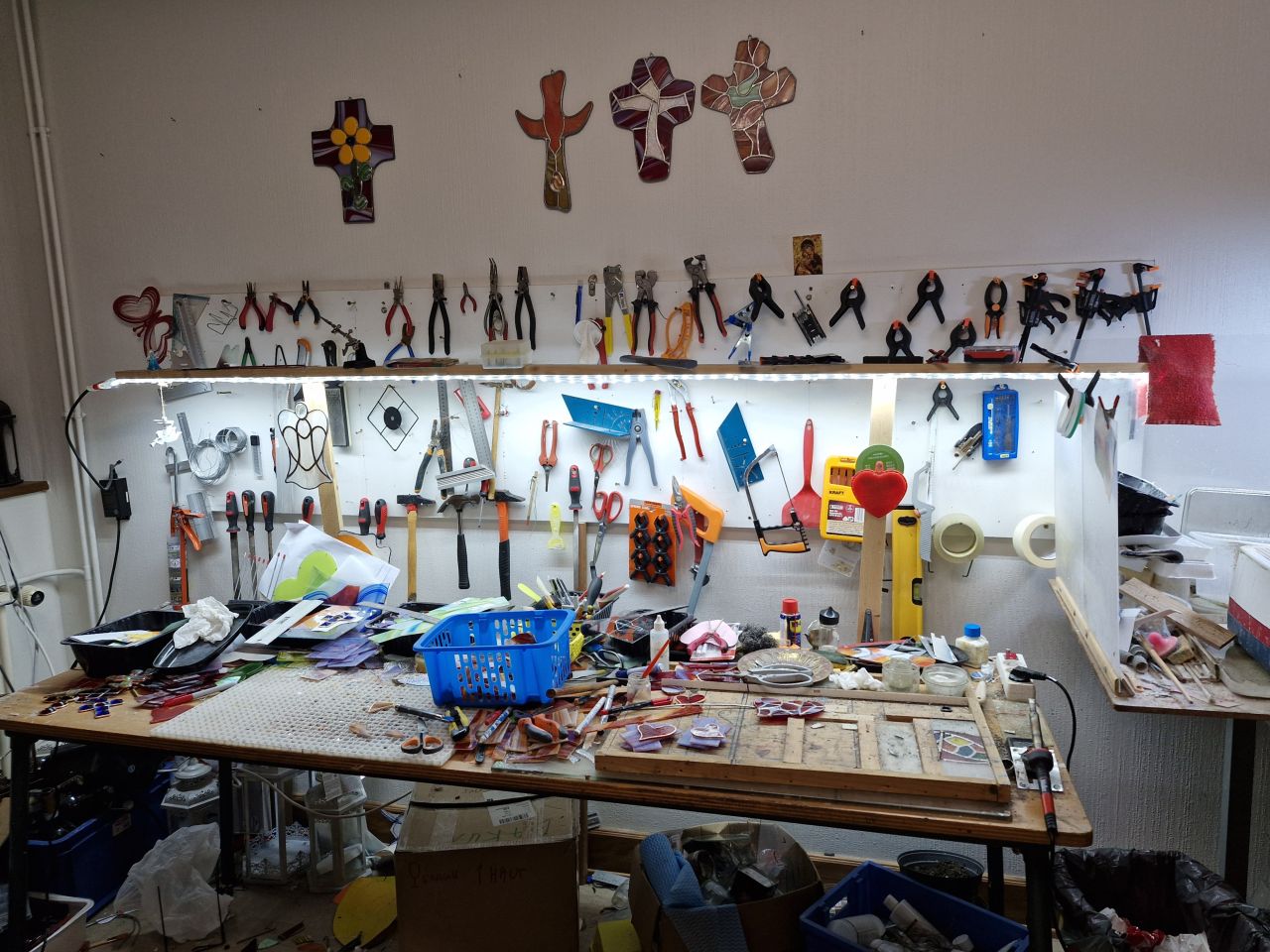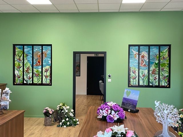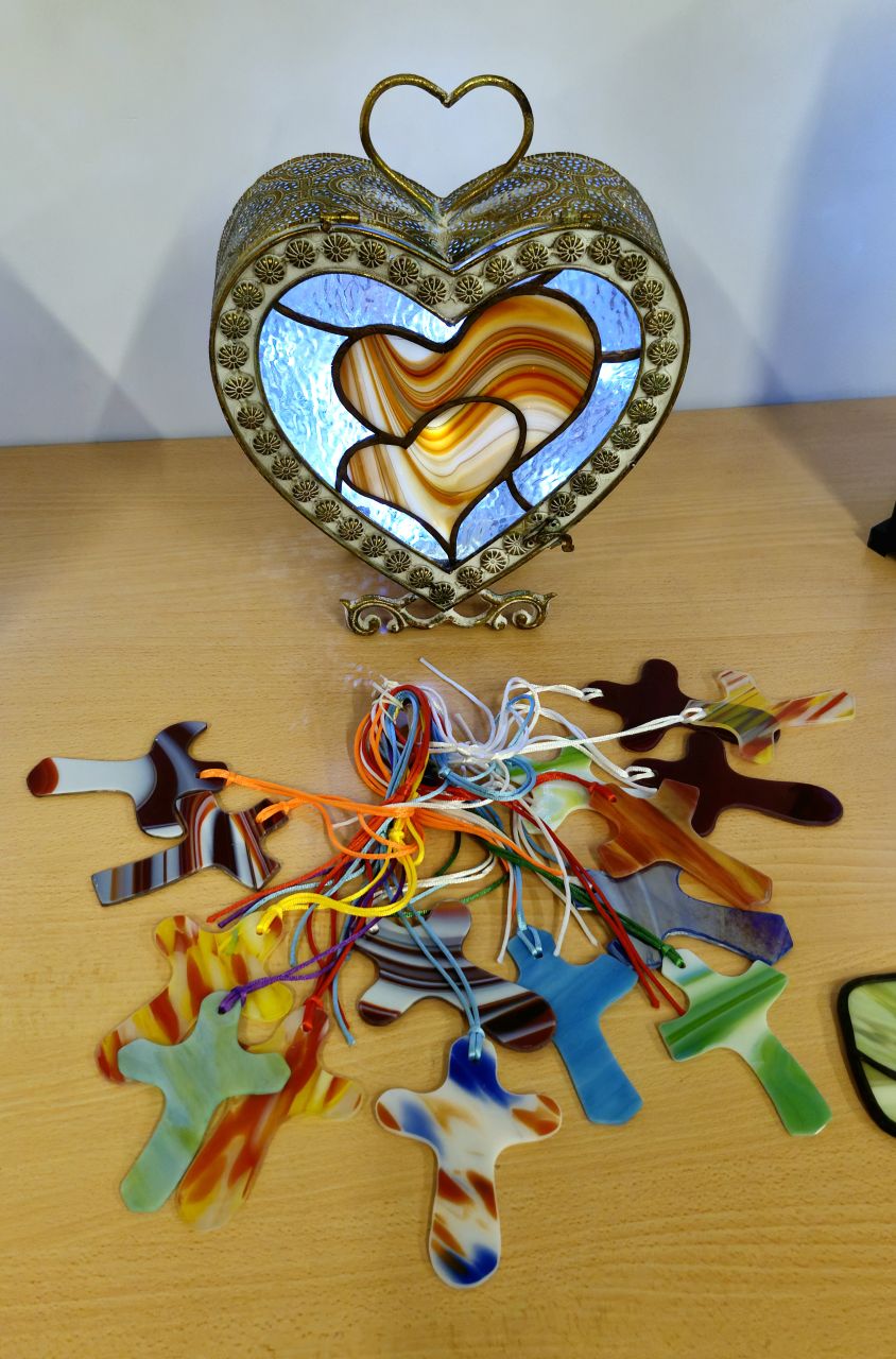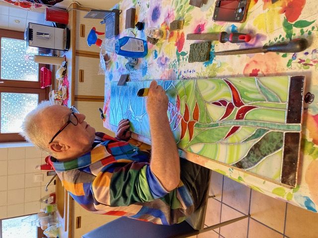 Si la démarche est spirituelle, l'ancrage est bien réel. Le Père BAKUN travaille à petite échelle, entièrement à la main, malgré un contexte économique difficile. Depuis la crise sanitaire, il a vu le coût des matériaux (étain, plomb, cuivre, verre) tripler. Pourtant, il continue de répondre aux demandes de particuliers ou institutions. Parmi ses œuvres notables, on peut admirer deux vitraux réalisés pour les pompes funèbres d’Obernai (rue de Pully) et des créations (Sacré-Cœur, chemin de croix en 14 stations) pour l’oratoire des Sœurs Servantes du Cœur Sacré de Jésus à Scy-Chazelles. Plusieurs de ses ouvres embellissent les chapelles et les maisons en Grèce et en Corse.