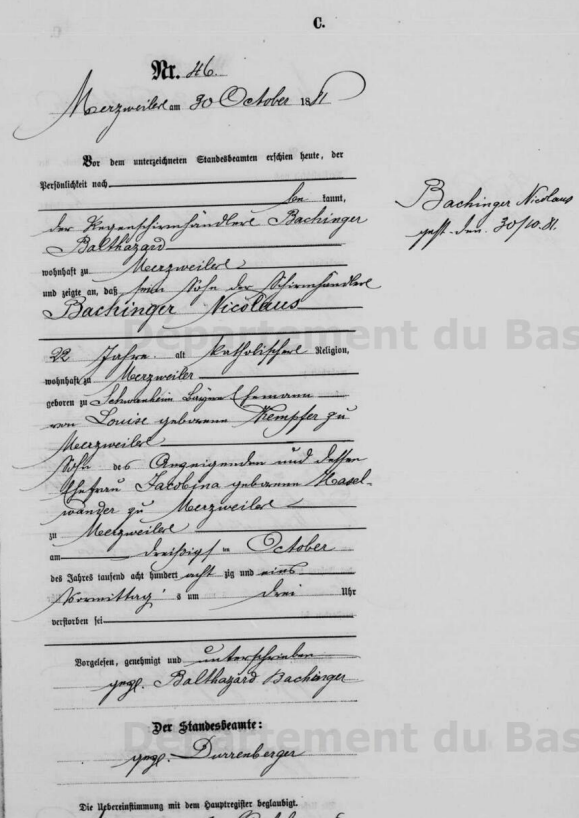 Après consultation de son acte de naissance et le fruit de recherches, nous pouvons affirmer qu'il n'était pas originaire de Schwanheim au Palatinat mais de Schwanheim en Bavière. La leçon : le fait de porter le même nom, être originaire du village du même nom et de vivre du même métier n'est pas une garantie de filiation. Mais l'histoire était quand même trop belle pour ne pas vous la raconter, non ? Ou pas ! 😆
