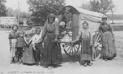 « Lundi arrivaient à Rioz plusieurs vanniers ambulants avec leurs roulottes; ils s'installèrent sur la place du Champ de foire. C'étaient Michel BACHINGER, âgé de 32 ans, alsacien d'origine, sa femme, ou plutôt sa concubine avec quatre enfants, et Jacob VITZEN, âgé de 33 ans, sa femme et cinq enfants ».