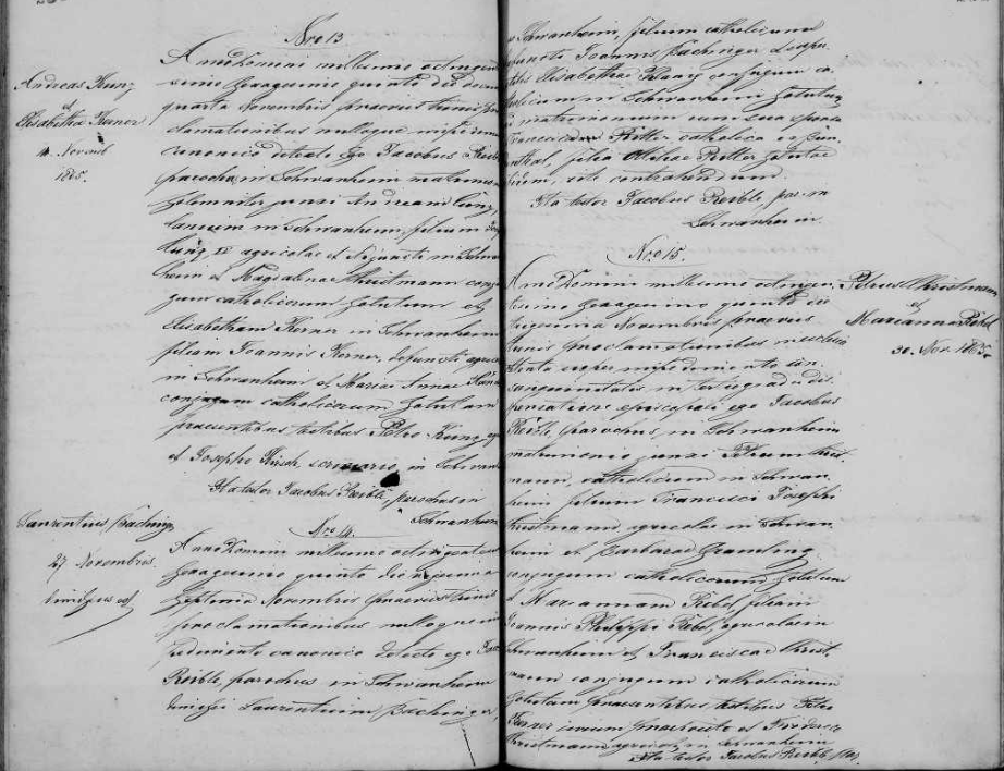 Acte de mariage de 1865 de Laurent (père de Michel) et de Franciska RITTER à Schwanheim, Landkreis Bergzabern, Bayern, Allemagne
