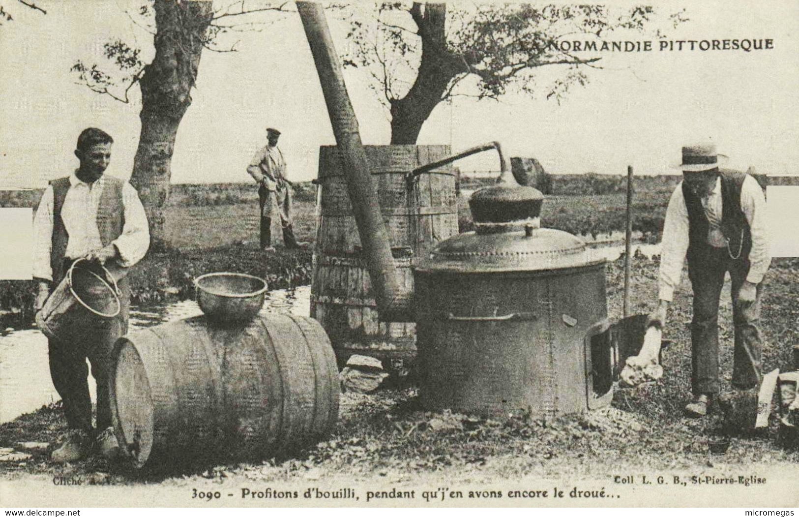 Dans chaque ferme d'une certaine importance se trouvait une petite distillerie artisanale à poste fixe, d'une contenance de cuve d'environ 50 litres. Avec ces petits alambics, le procédé de distillation prenait un temps fou et on était parfois obligé de travailler jour et nuit. Chez les agriculteurs on réservait la distillation pour l'hiver. Le bain-marie était inconnu (ce qui augmentait le risque de brûler les produits), de même que le procédé de condensation avec une grande tonne à eau froide. La condensation se faisait à main de la façon suivante : les vapeurs des parties volatiles du produit à distiller étaient canalisées dans un tuyau en cuivre à deux bras. La condensation des vapeurs s'effectuait dans cette double tuyauterie, par application de chiffons mouillés, constamment renouvelés. Le produit final était recueilli dans un réservoir, placé à l'embouchure de la double tuyauterie de conduite.