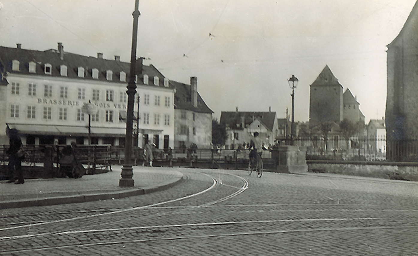 A droite, ancienne prison centrale de Strasbourg, au fond, ponts couverts et le quartier de la Petite France
