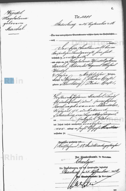 41 ans, née MERSCHEL, et Joseph WIRTH, journalier de 39 ans, tous deux originaires de Haguenau, sont condamnés à mort pour l’empoisonnement et le meurtre avec préméditation de Mickael WENDEL, le mari de Madeleine, survenu le 7 mai 1913.