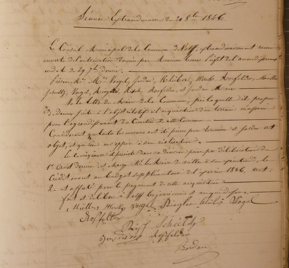 Délibération du Conseil municipal du 20 octobre 1846 confirmant le désir d'agrandir le cimetière
