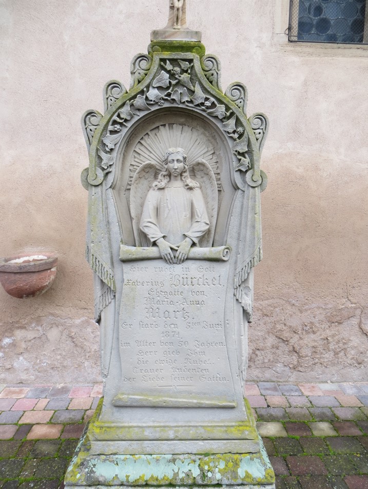 D'ailleurs, le bon observateur pourra encore constater de nos jours que le mur a été édifié en deux étapes. Par la suppression d'une partie de l'ancien cimetière pour faire place à la construction de la mairie, beaucoup de monuments funéraires disparurent et trouvèrent place dans le mur d'enceinte. D'autres, par contre, sont bien conservés comme celui d'André SCHECK, curé de Valff pendant 43 ans, qui se trouve à côté de la chapelle Notre-Dame, et celui du curé LEYBACH devant la chapelle Sainte Marguerite. La grande croix à côté de Sainte Marguerite était la croix de l'ancien cimetière.
