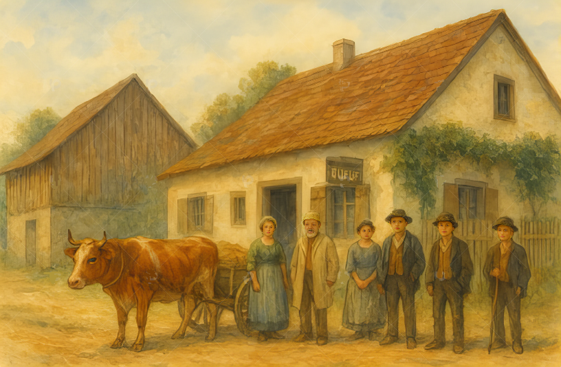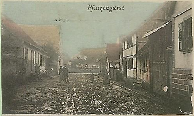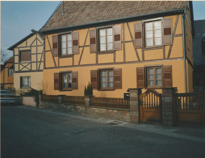 - 1851 : la famille MARTZ est toujours là. A la place des JORDAN on découvre le maçon STUMPF Michel puis en 1856 la veuve WEHREL Odile, veuve RISCH puis encore en 1861 le cultivateur MEYER Joseph. A noter qu'à la porte à côté habitent maintenant SCHWARTZ George, boulanger de son métier, son épouse LUTZ Anne-Marie et George, le fils naturel de la soeur de cette dernière. Nous allons reparler de cette famille