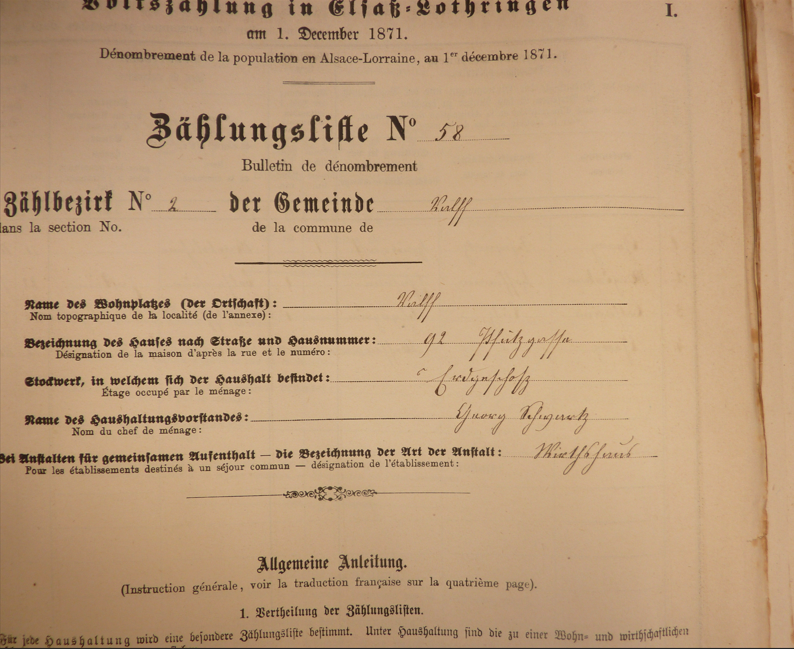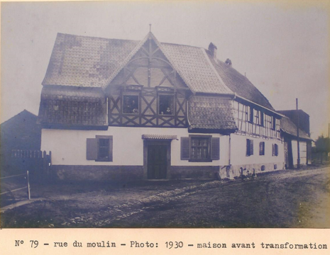 Pour ce faire, il nous faut plus de repères. En 1880, le numéro du moulin est le même qu'aujourd'hui, le 79. Le truc est de comprendre quel chemin a pris le recenseur. C'est le recensement de 1871 qui sera la clé. Il est parti de la Pfutzgasse (rue des flaques) a traversé la rue Principale et a prolongé dans la rue du Moulin. En remontant les propriétaires successifs (en tenant compte des voisins) le numéro que nous cherchons est le 92, le même qu'en 1846 ! En plus, en 1871, il est noté Wirthzhaus, que veut-on de plus !