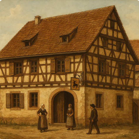 Le restaurant avec salle de bal se trouvait à l'origine au 76, rue du moulin (épicerie SCHAETZEL) avant d'être transféré au début du siècle au 114, rue principale. Communément appelé S' Gaschtemechels Wirtschaft, son propriétaire, dans la rue du Moulin, était à l'origine Aloyse MARTZ. Son gendre BIECHER Henry transféra le restaurant dans des bâtiments nouvellement construits. Le restaurant est toujours exploité de nos jours. Retrouvez d'autres articles :