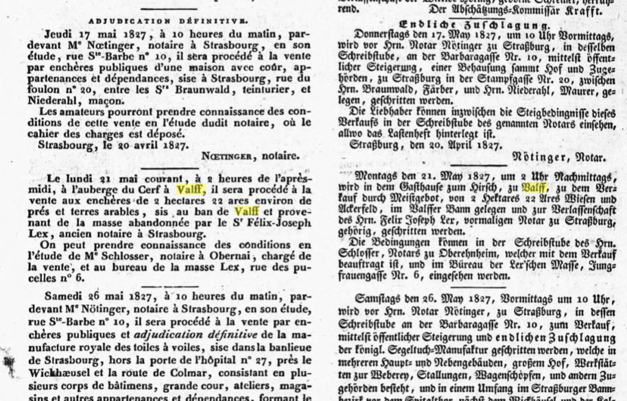 Les affiches de la ville de Strasbourg annoncent le 12 mai 1827 :