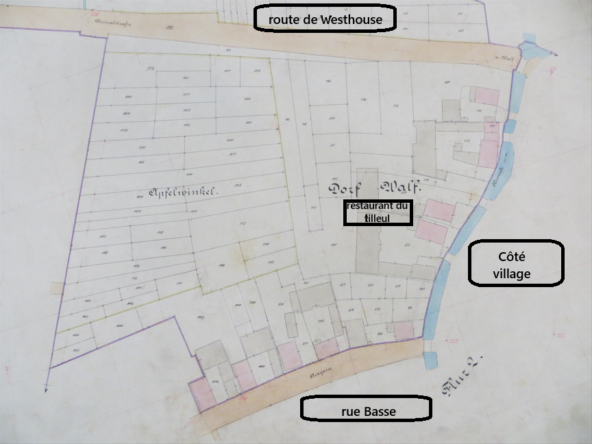 Valff 1887, bas-village, habitations, maisons et granges en rose