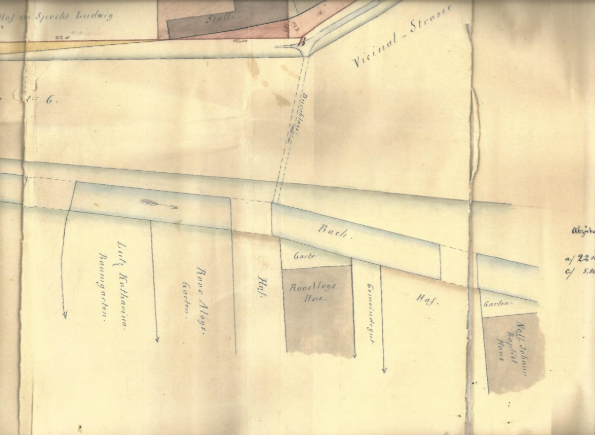On peut noter deux maisons attenantes. Celle à gauche, en se trouvant dans la rue, est le restaurant du Tilleul, à droite, l'auberge ROOS ROSFELDER.. Après le décès des parents, la maison n'est plus habitée lors du recensement de 1885.