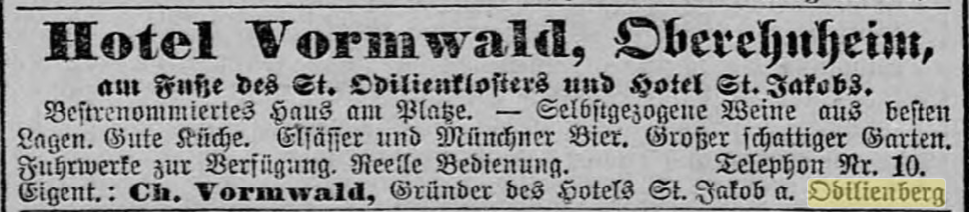 Hôtel Vomwald à Obernai. Charles VORMWALD, créateur de l'hôtel St Jacob au Mont St-Odile (domaine St Jacques)