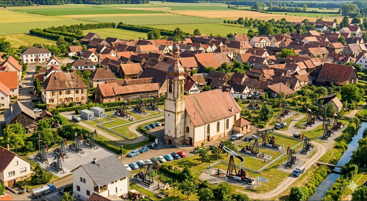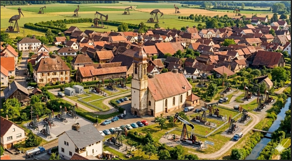Que les défenseurs de la nature se rassurent : les pétroliers prévoient d'installer des pompes à pétrole en forme de cigognes géantes afin de préserver l'esthétique alsacienne du paysage. De plus, une piste cyclable chauffée par la chaleur résiduelle de l'extraction sera construite entre Valff et Westhouse. Enfin ! 🚴♀️